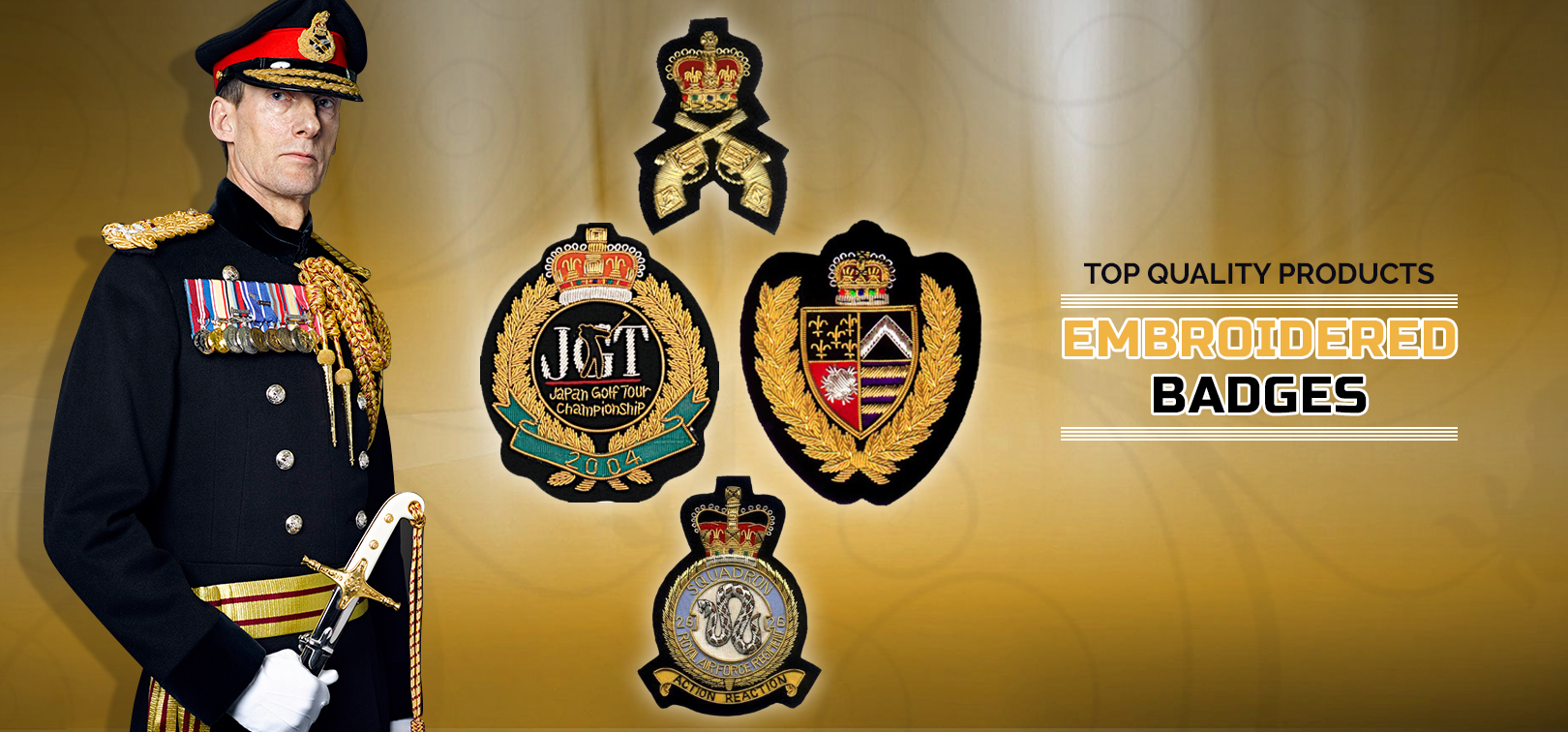 With a desire to outrival in the industry, the company has established an extensive product range which includes BLAZER BADGES, AIGUILLETTES, EPAULETS, CORD SHOULDERS, SLIDE SHOULDERS, CAP VISORS, CAP BADGES, ECCLESIASTICAL ITEMS, HANDMADE EMBROIDERY CROSSES, FRINGS, BRAIDS, EMBROIDERY MATERIALS of All types, BUTTONS, LEATHER GLOVES, and other small Accessories. It is due to this wide range of products that the customers are attracted towards the company. Manufacturing and Supply from Owned Manufacturing Units